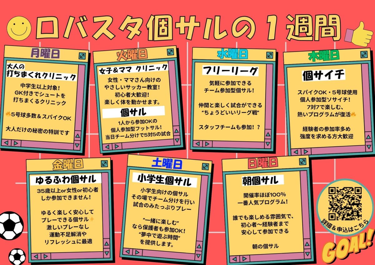 | 無償レンタル | フットサルボール2球、ビブス一色5枚 |